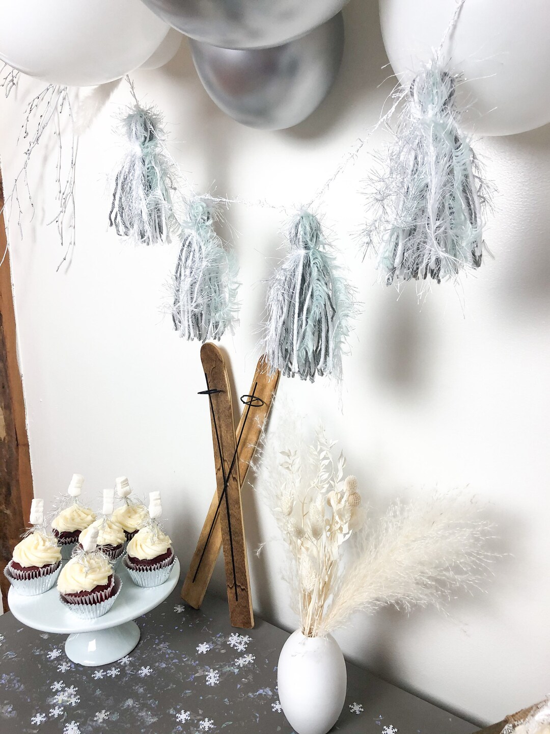 Winter Snow Yarn Tassel Garland Gray Silver Light Green White Snow Much Fun Winter Wonderland Nursery Decor Baby Shower Shelf Decor Birthday Etsy